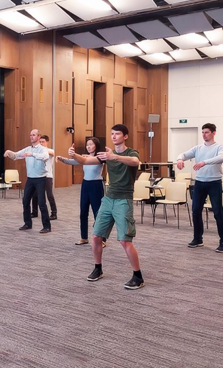 - Мастер Ши Янбин демонстрирует кунг-фу или тайцзи комплекс (5 минут, опционально, если есть место около 8 на 4 метров).