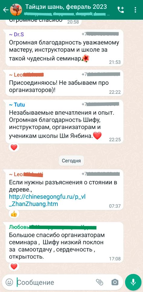 Все инструкторы прошли многолетнее обучение у Мастера Ши янбина