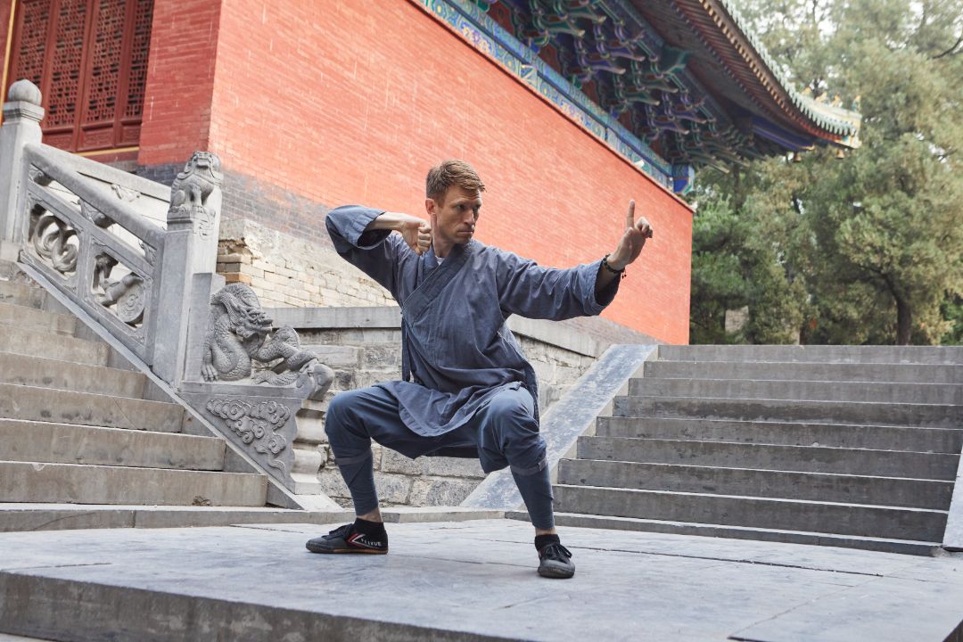 На видео инструкторы Пётр Ивлиев и Роман Архипов выполняют комплекс тайцзи на тренировочном сборе в монастыре Шаолинь в 2024 году.